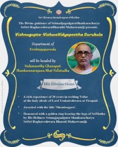 VVV’s Krishnayajurveda department is in safe hands! With a 30 years experience of chanting Veda to Tirupathi Venkateshwara and having received a title of ‘Shruthisagara’ and received ‘Mudrayungura’ from Sri~Matha, Pallatadka Shankaranarayana Bhat takes the responsibility.