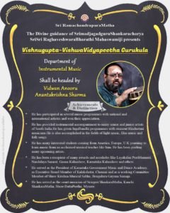 The Instrumental Music Department of the Gurukulams will be lead by the legendary Vidwan Anooru Anantakrishna Sharms aka Shivu, who is also the President of Karnataka Sangeeta-Nrutya Academy.