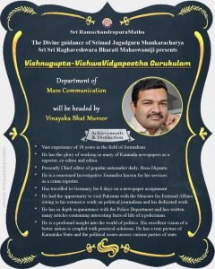 Sri Vinayaka Bhat Muroor, who has 18 years of experience in the field of journalism and is currently the Editor-in-Chief of ‘Hosadiganta’ – is leading the department of Mass Communication at our Gurukulams!