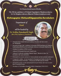 Here is a glimpse of achievements of Dr. Sridhar Ramakanth Hegde who will be heading the Hindi department of VVV – Gurukulams..
